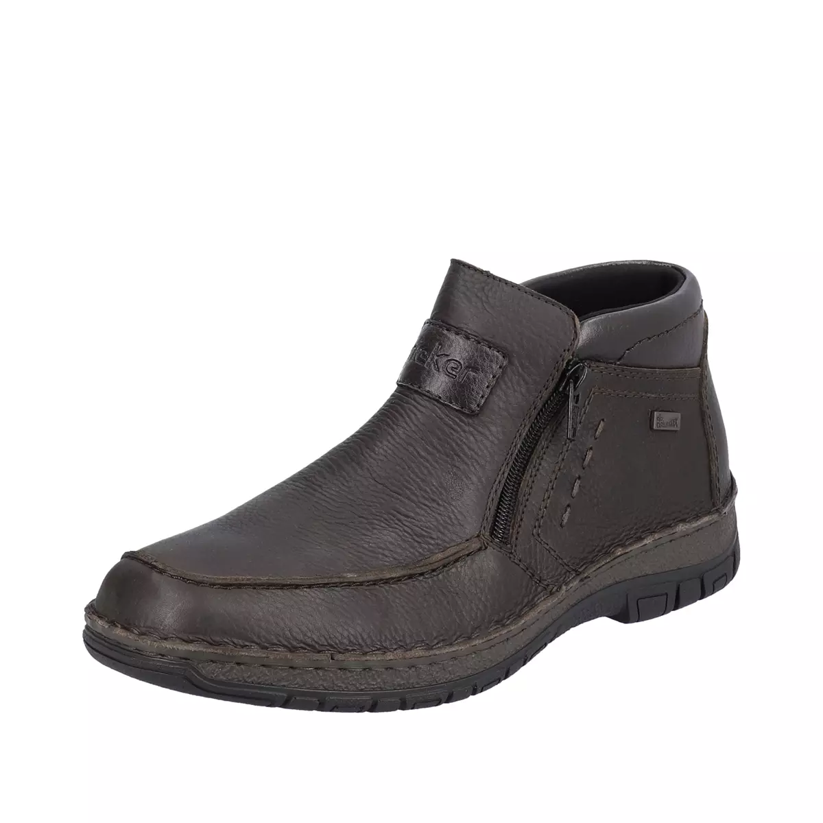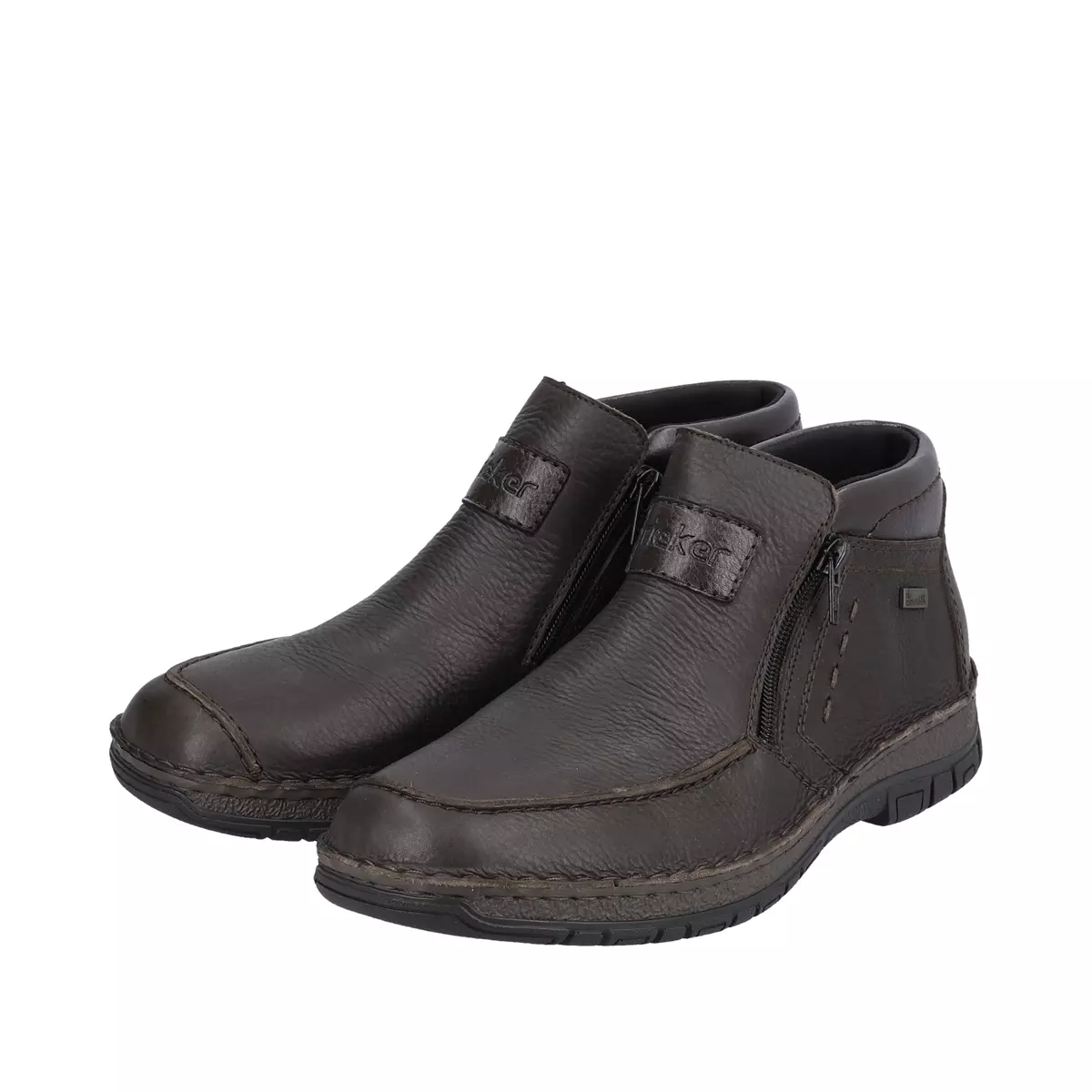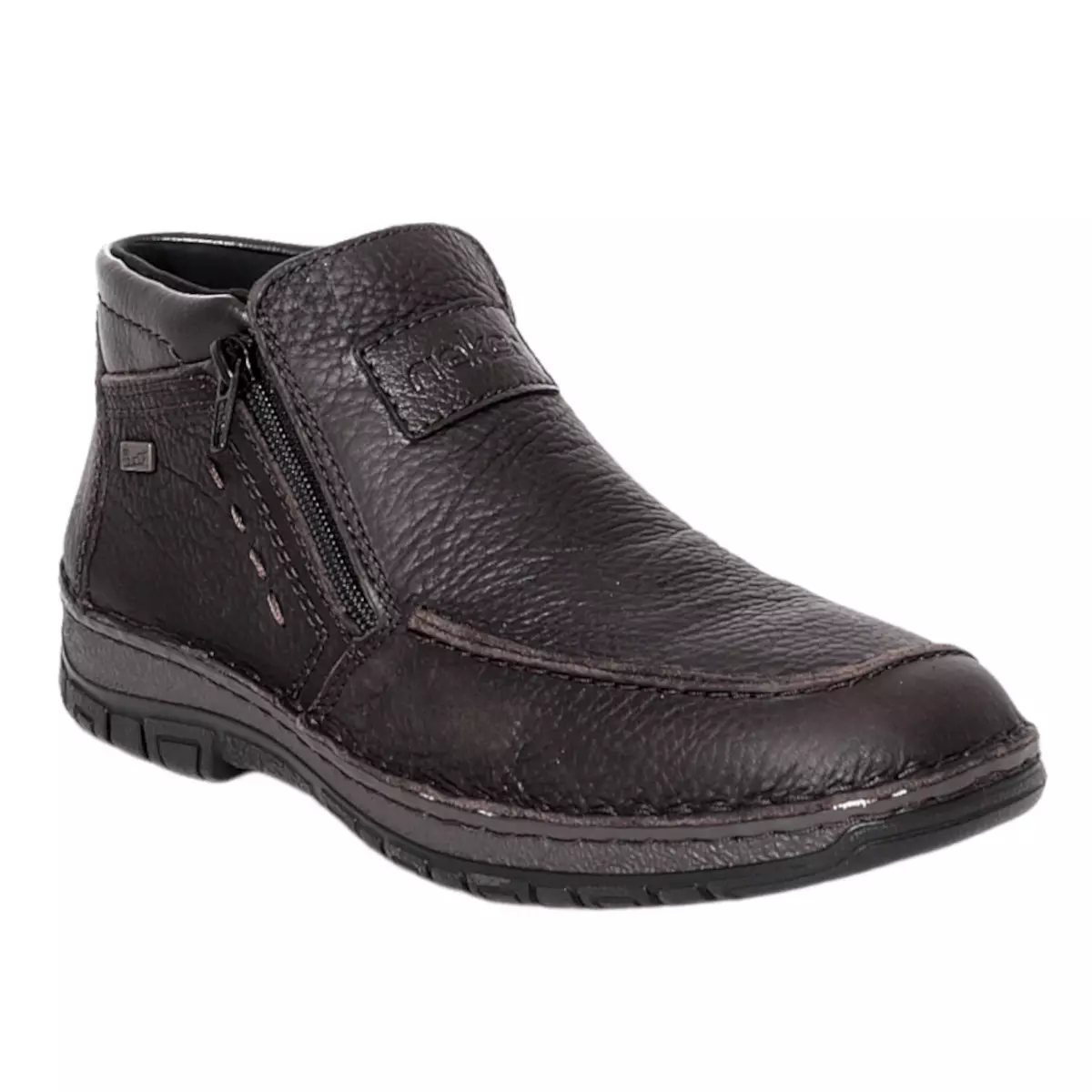 KRÓTKI OPIS: MĘSKIE BRAZOWE TRZEWIKI RIEKER WYKONANE Z NATURALNEJ SKÓRY LICOWEJ W POŁĄCZENIU ZE SKÓRĄ EKOLOGICZNĄ. W ŚRODKU OCIEPLONE WEŁNĄ, Z BOKU CHOLEWKI ZAMKI UŁATWIAJĄCE ZAŁOŻENIE NA STOPĘ.